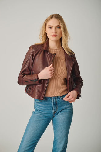Mauritius Bita Crop Moto Jacket / Dark Cherry