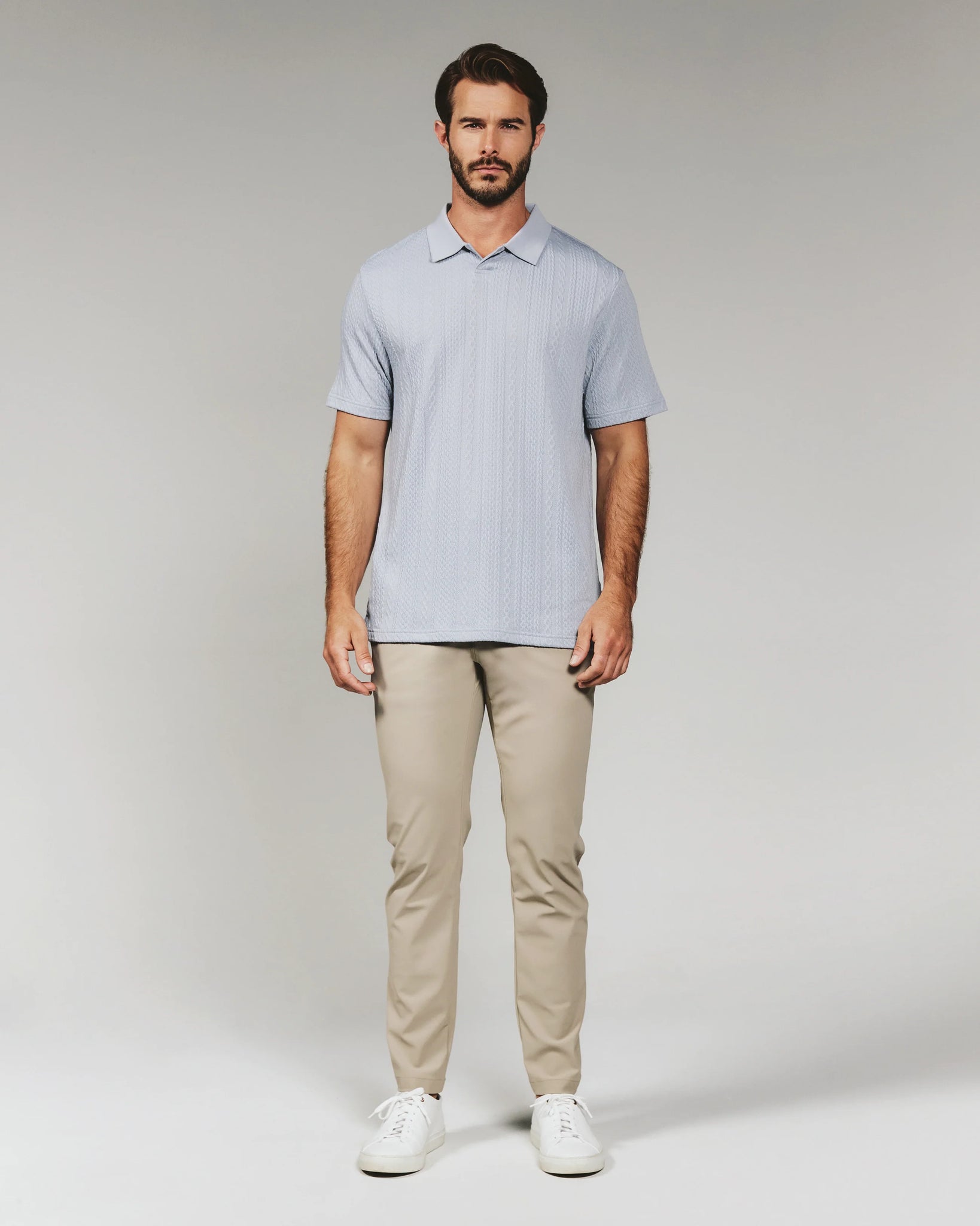 A soft, lightweight, and breathable sweater polo made with a classic knitwear pattern. Features an open placket with ribbed Johnny collar and side vents for ease of movement.