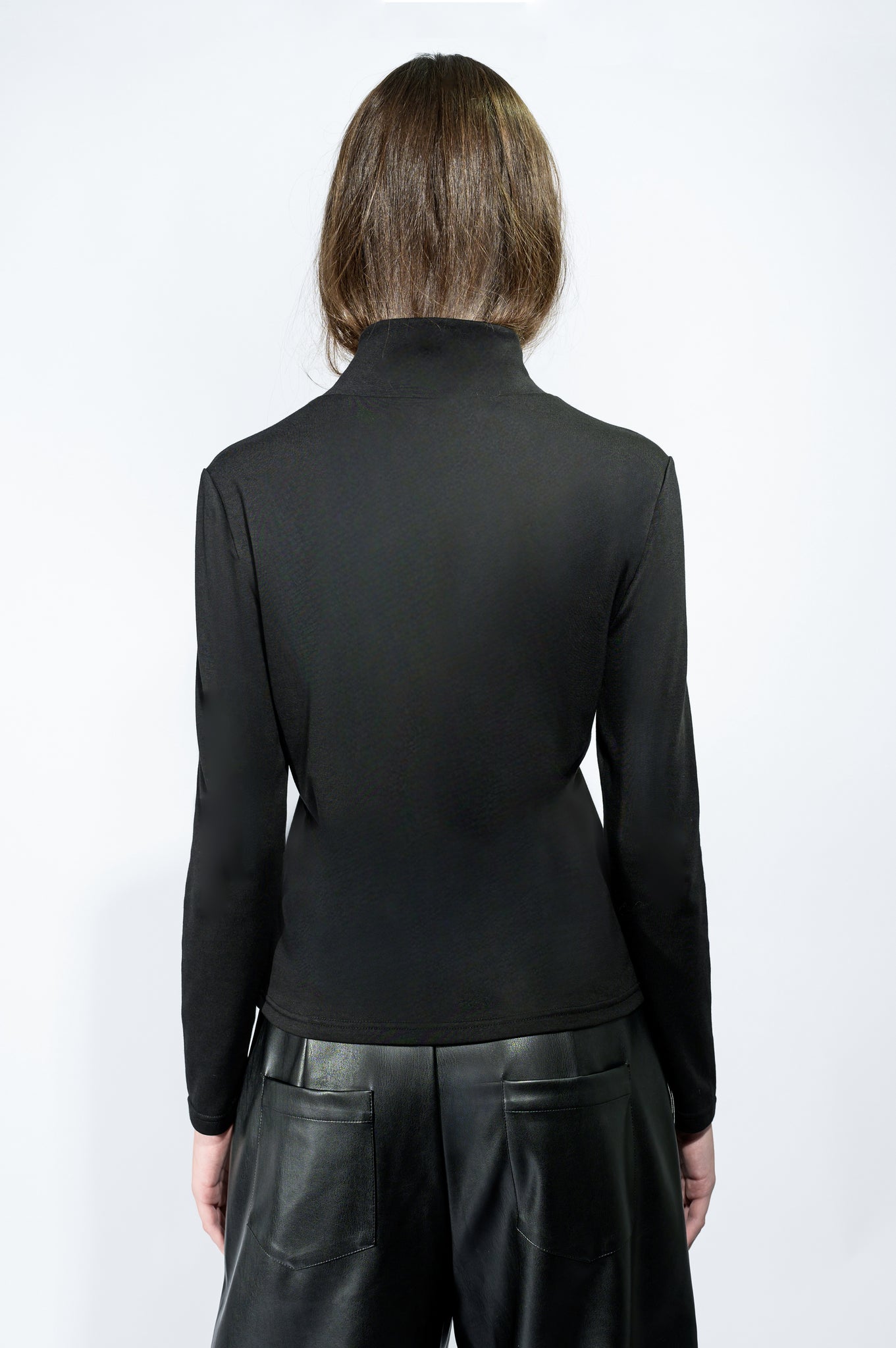 The Cross Turtleneck is crafted from an ultra-soft jersey knit, offering the ultimate comfort all day long. This not-so-basic long sleeve turtleneck features a unique cross detail at the neck, adding a touch of edge to a classic silhouette. Whether you're layering it under a blazer for a modern office look or wearing it on its own for a casual outing, this versatile piece is a must-have.