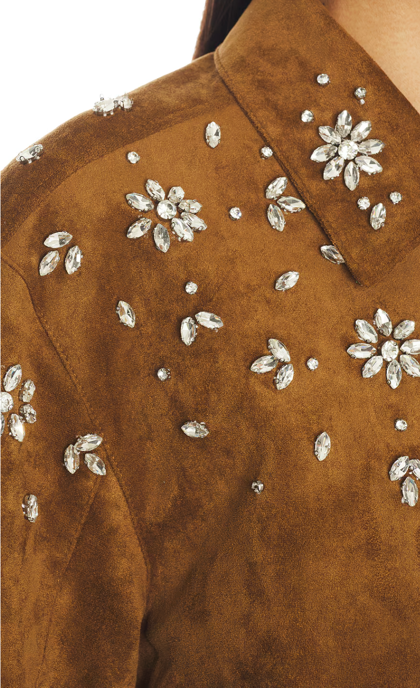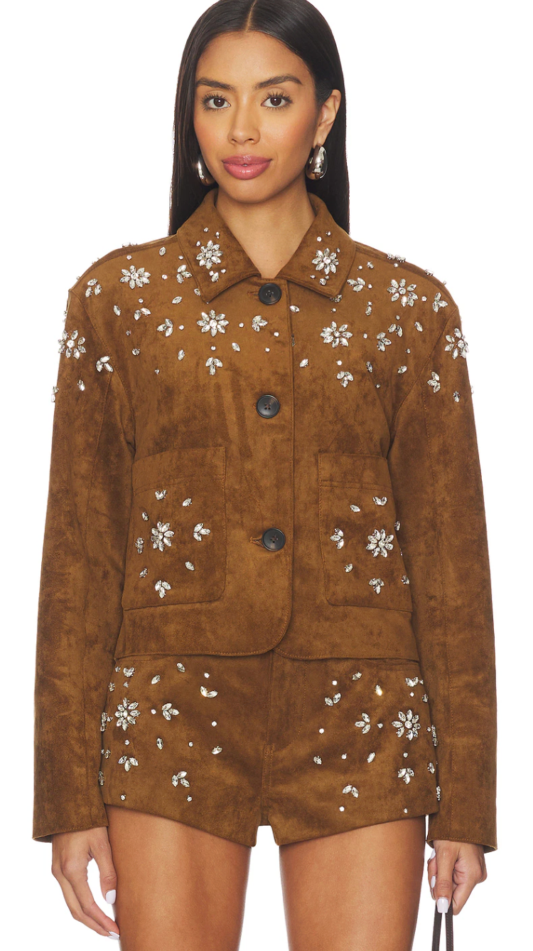 Blank NYC Cropped Faux Suede Embellished Blazer