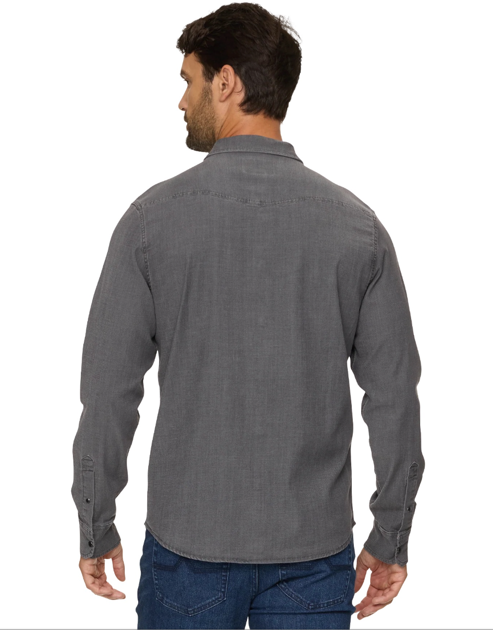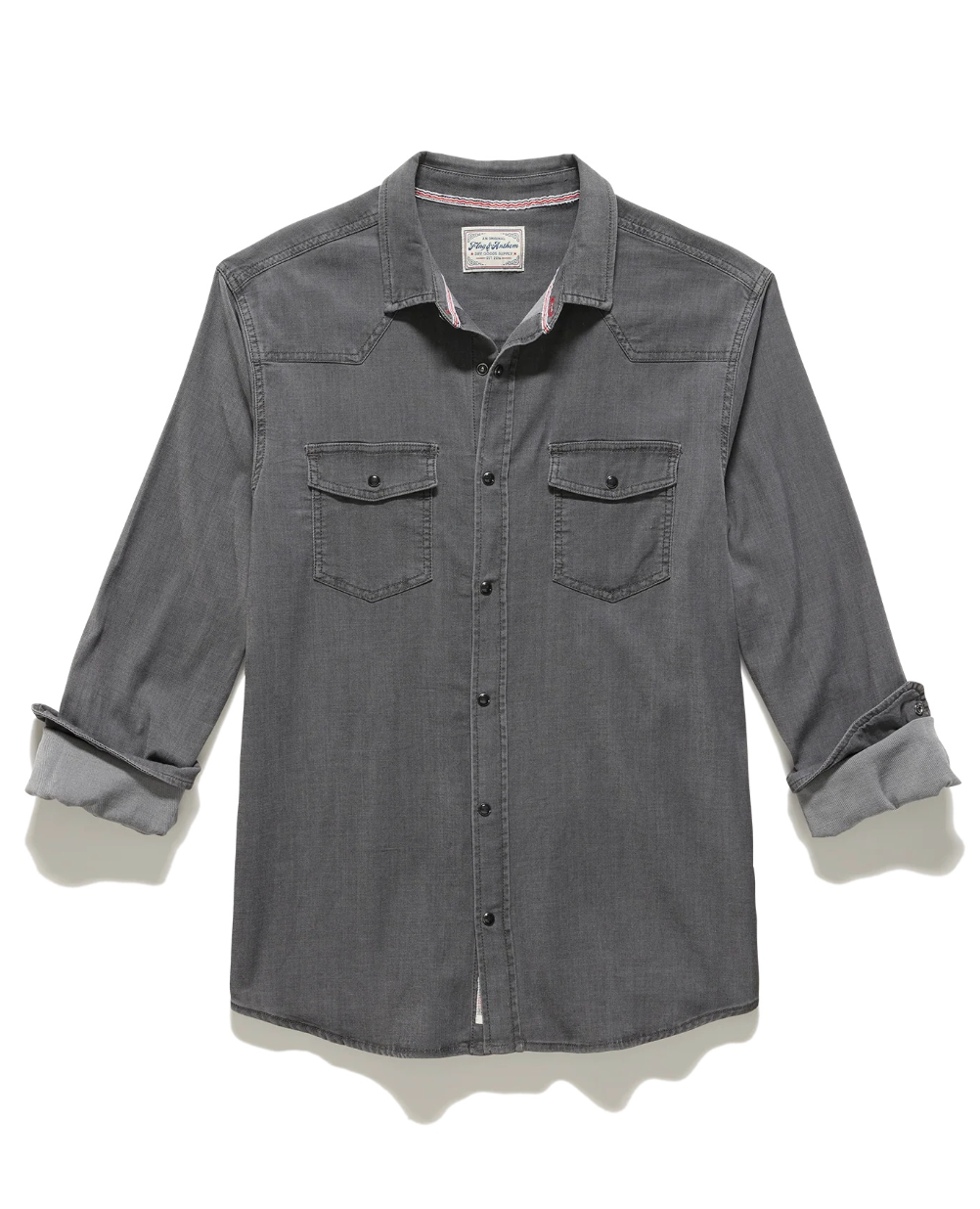 Embrace the western feel with this vintage-inspired button down that’ll keep you looking fresh for any occasion. Made from a lightweight acid wash fabric, this billowy chambray shirt has the perfect amount of stretch with the right amount of durability. Dual front flap pockets; snap closures. Tailored athletic fit.