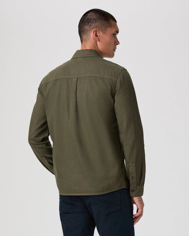 This long sleeve button up is a year-round menswear must-have. Made from a lightweight, incredibly soft sueded twill fabric in a dark olive green hue, the Martin Shirt is designed with a regular fit, double chest pockets with a button detail and contrast stitching for a utilitarian feel.