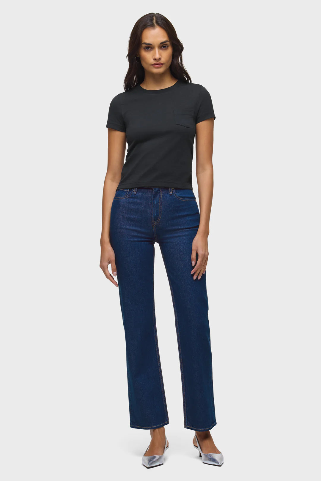 Our Remi High-Rise Straight Jean in Rinse is cut with a flattering high rise and relaxed leg. Made of comfort stretch denim in a dark indigo wash, this pair is finished with a 30" inseam.