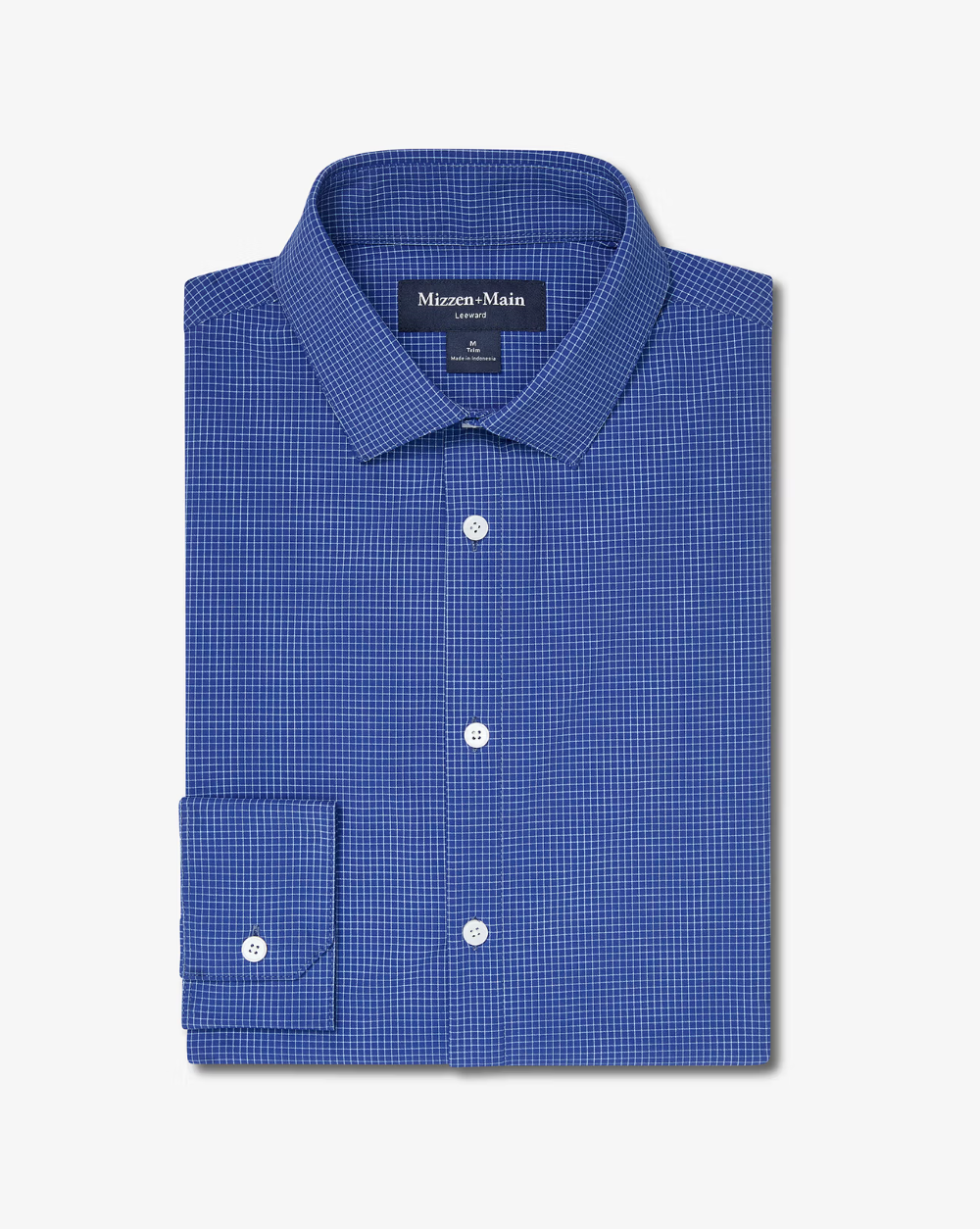 Mizzen + Main Leeward LS Dress Shirt / Cobalt Jared Grid
