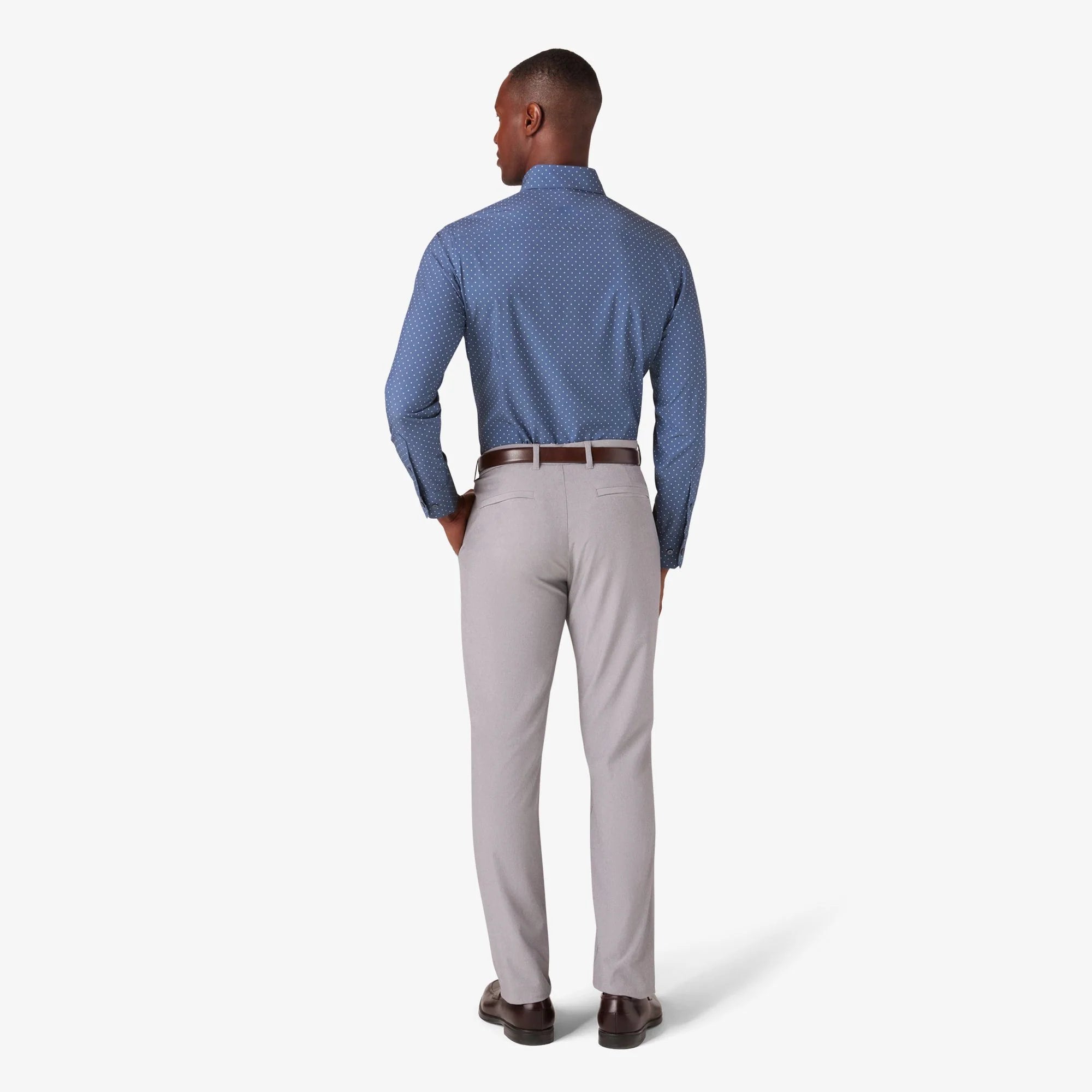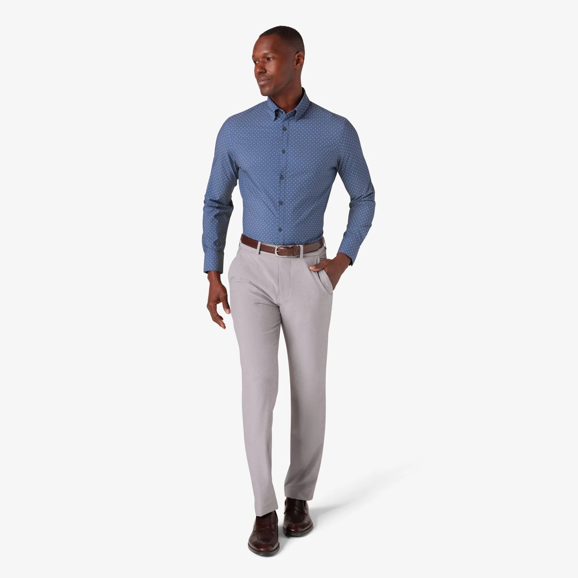 The Leeward is a lightweight, wrinkle-resistant performance dress shirt with built-in stretch. Designed for easy care, breathable comfort, and all-day wear—no dry cleaning needed.
