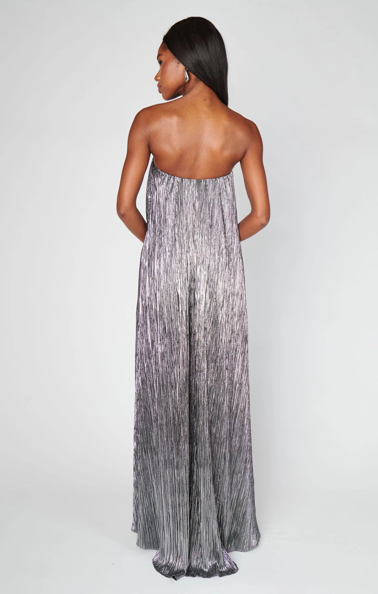 Meet Athena, your go-to for party season! This perfectly draped gown in dreamy pleated silver fabric features a notched strapless neckline and flows like liquid silver - equal parts dreamy and dramatic!