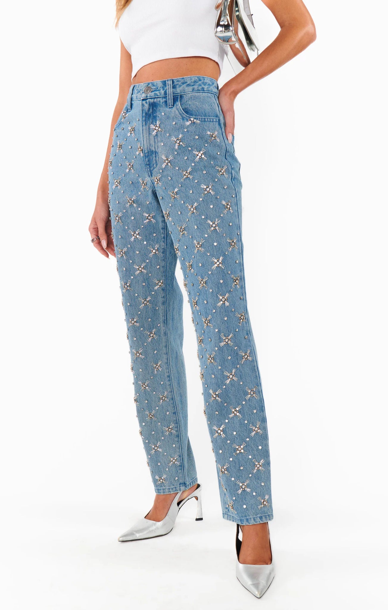 You'll want to add the Icon Jeans to your denim rotation! This flattering straight leg jean is easy to wear all year 'round. Featuring a relaxed fit and an embellished light blue wash, it's a great everyday jean that can easily be dressed up or down. Add a tucked in tee and chunky kicks or pair with a cute crop and heeled sandals for a polished finish.