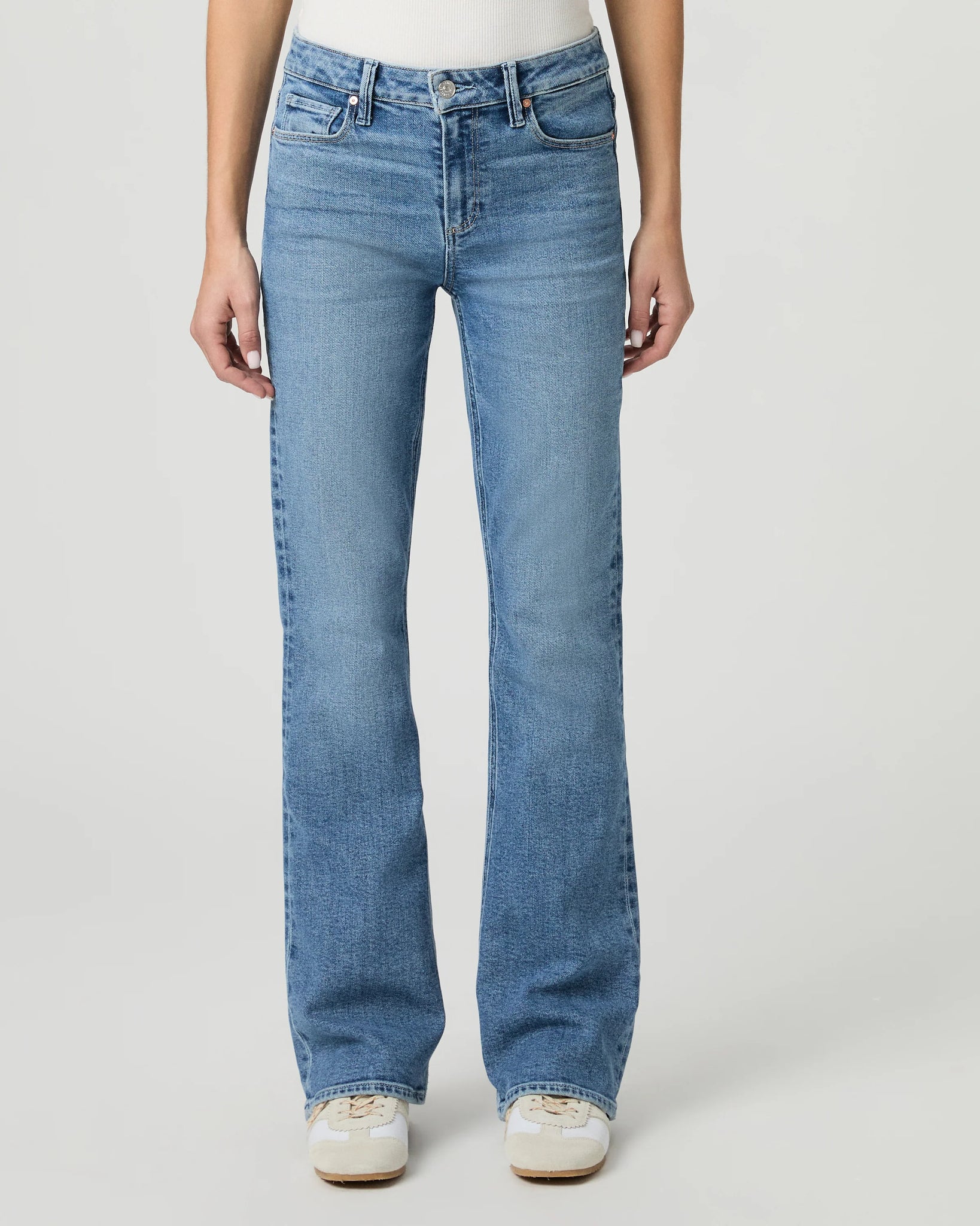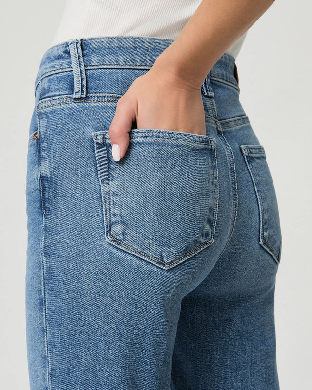 The High Rise Laurel Canyon is a vintage PAIGE style that has made a big comeback. Cut from TRANSCEND VINTAGE denim in a light vintage-inspired wash with marble texture, a raw hem and a 32" inseam, this classic bootcut silhouette combines the signature comfort of Transcend with rich denim character for a lived-in look.