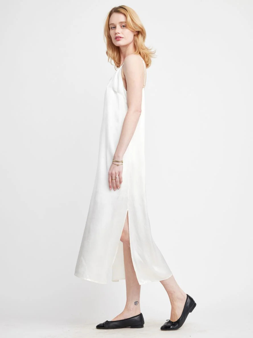 The Camila Slip Dress is the epitome of effortless elegance. Designed with a fluid, body-skimming silhouette, it features delicate spaghetti straps, a flattering V-neckline, and side slits for easy movement. Its minimalist design makes it versatile—perfect for layering under a jacket by day or elevating with heels and jewelry by night.