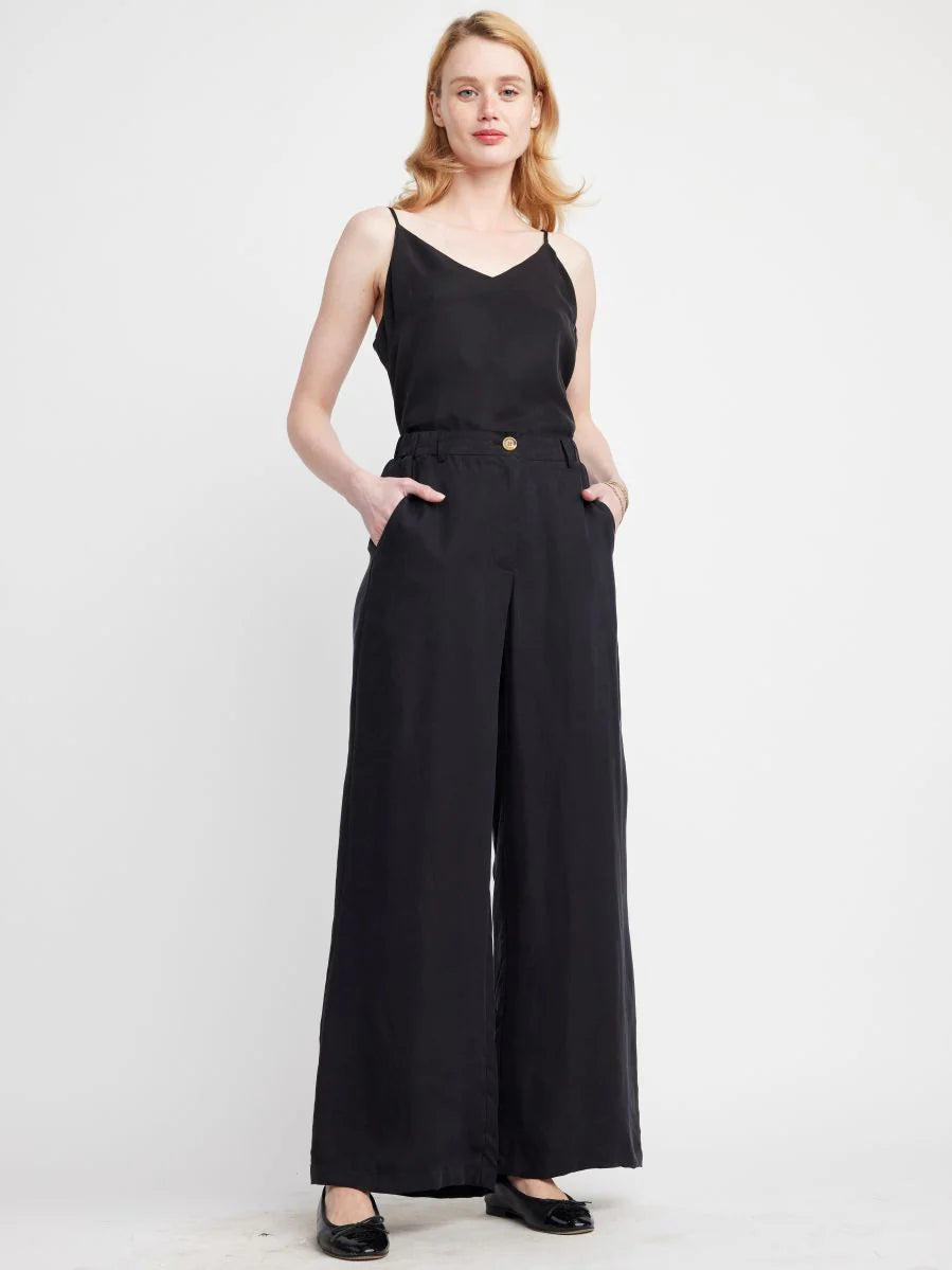 The Caroline Pants are a modern wardrobe essential designed for effortless polish and comfort. Featuring a high-rise elastic waistband with button detail, side pockets, and a wide-leg silhouette, they offer a relaxed yet elevated fit. Easy to style up or down, these pants move seamlessly from office hours to evenings out.